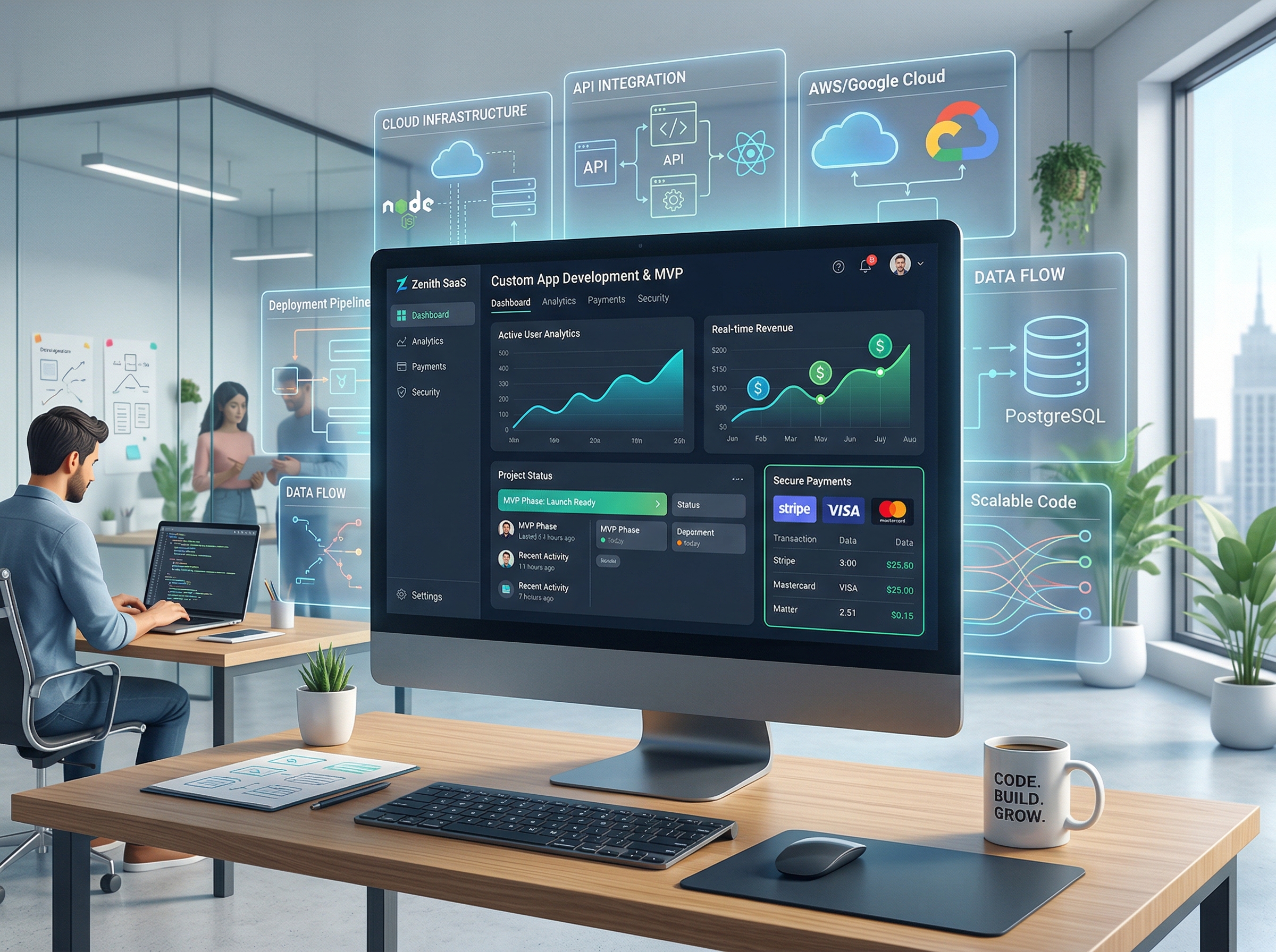 Tvorba softwaru na zakázku od jednoduchých aplikací až po rozsáhlé systémy včetně servisu, podpory a zaškolení.